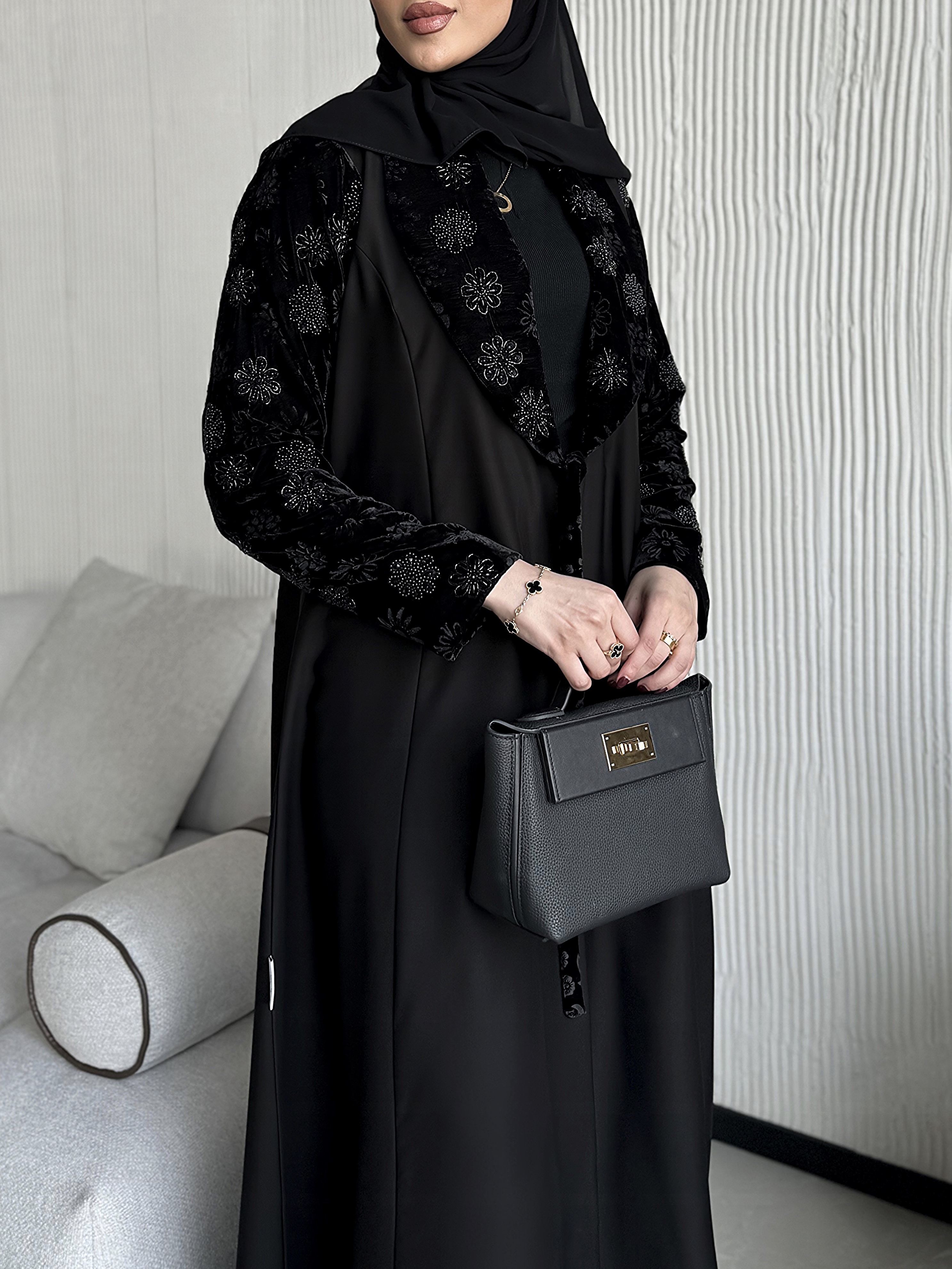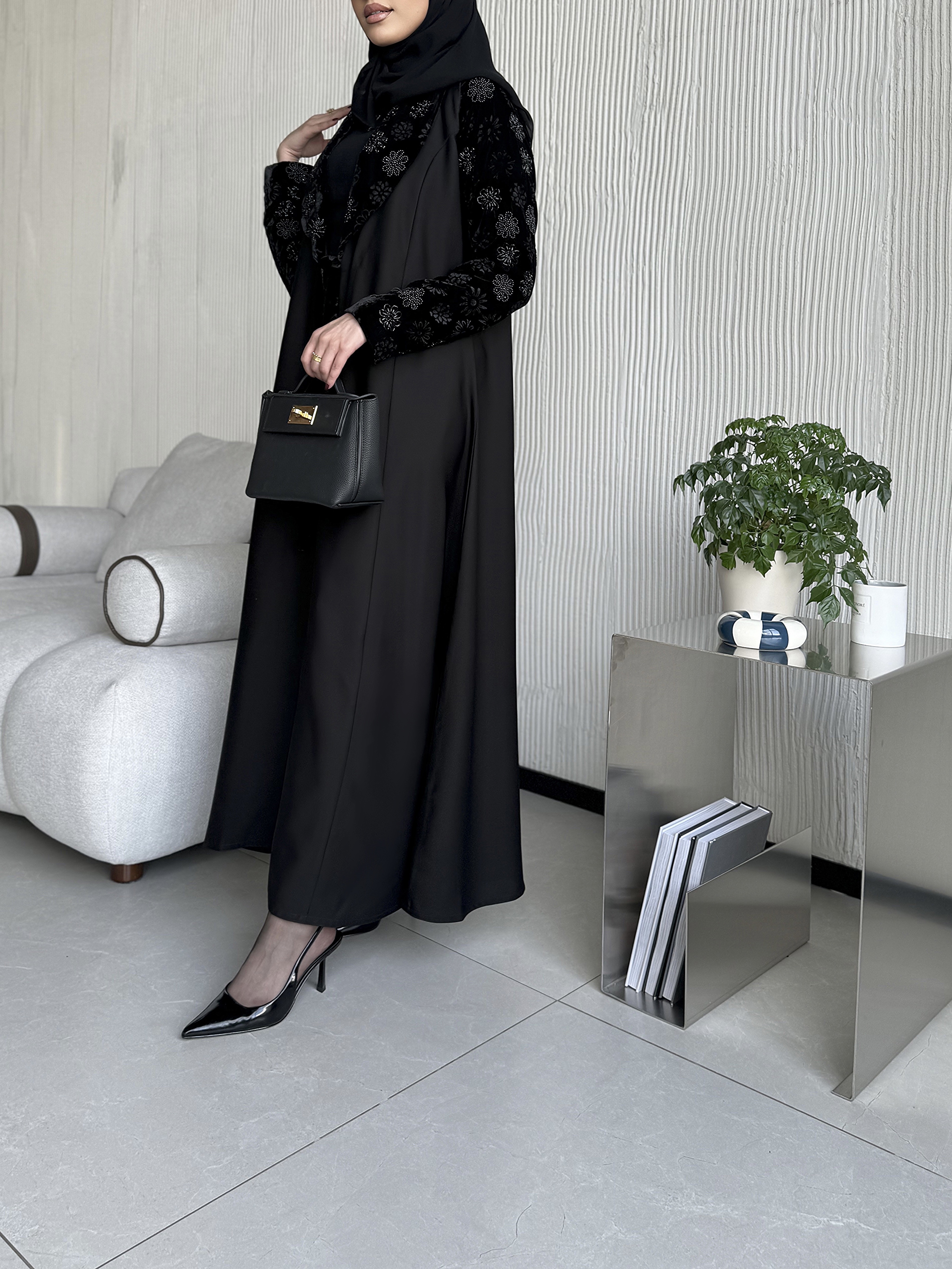جميع العبايات التي قياس صدرها ف28 ليس بها ازرار، وجميع بقية العبايات بها ازرار نوع القماش : كريب إندونيسي شامل الشيلة : نعم نوع الشيلة: سادة قماش الشيلة: برج الإمارات قياس الشيلة: 80 إنش تنظيف : تنظيف جاف ملاحظة: العارضة ترتدي مقاس الطول : 54 العرض : 22 الكم من نص الرقبه : 30