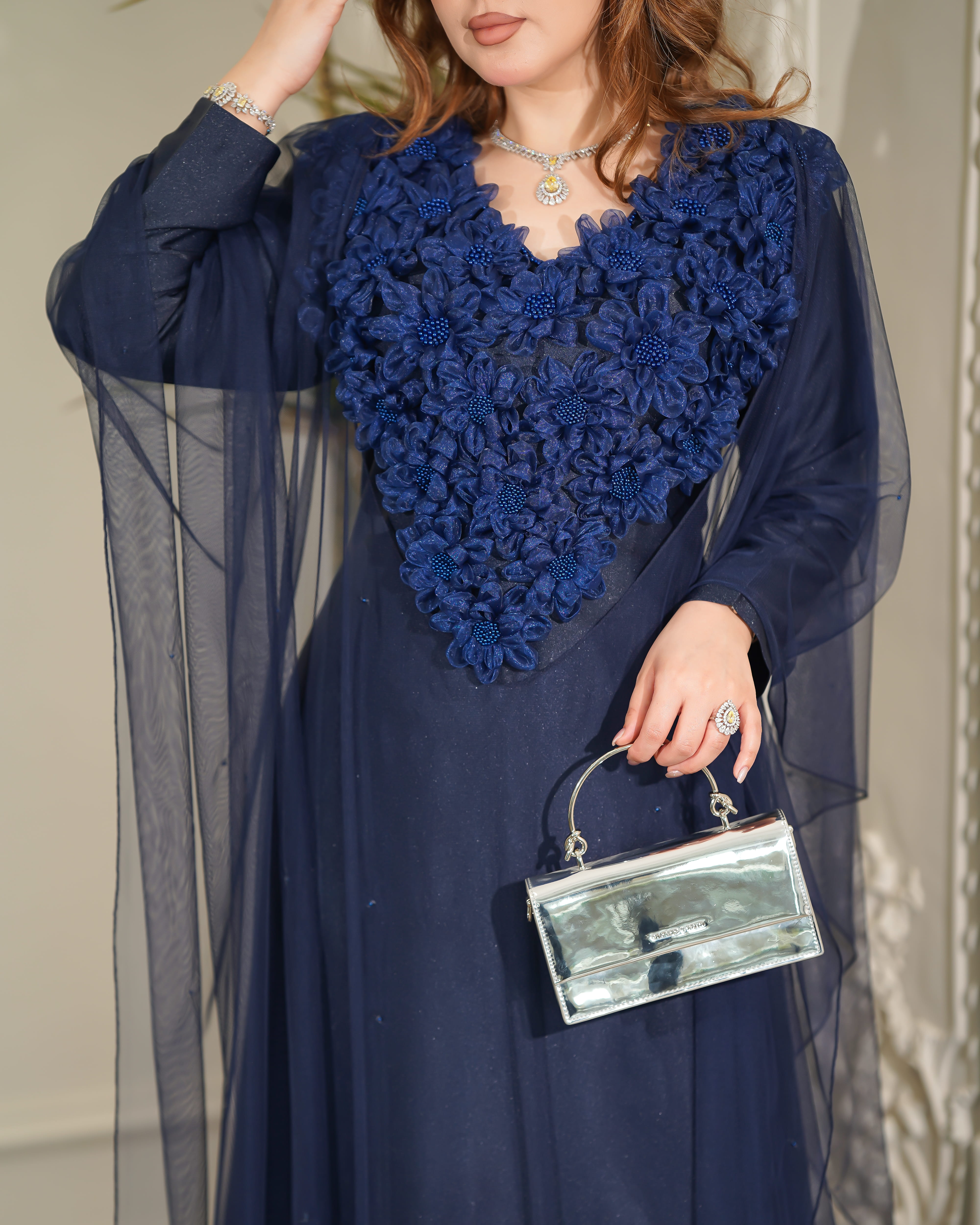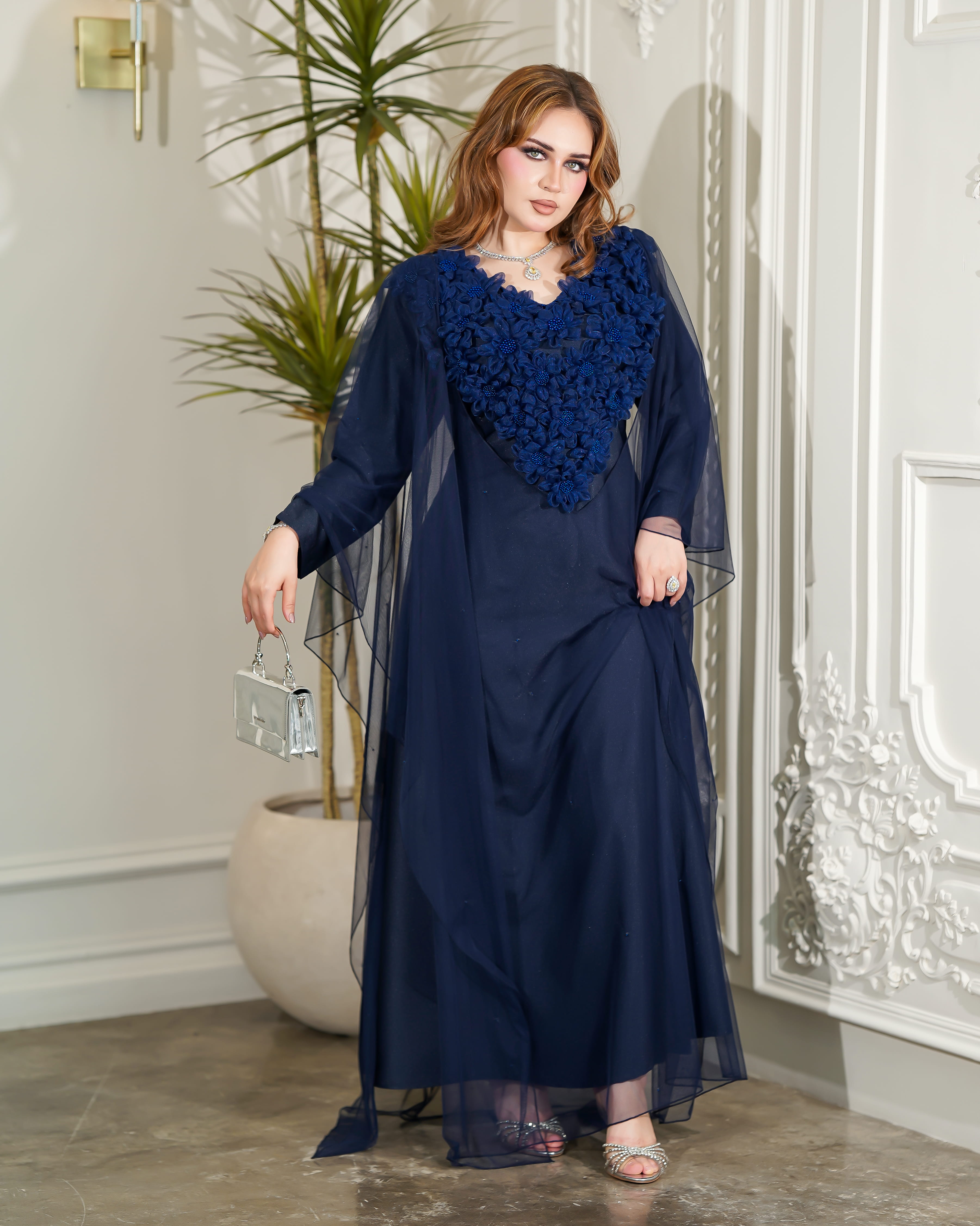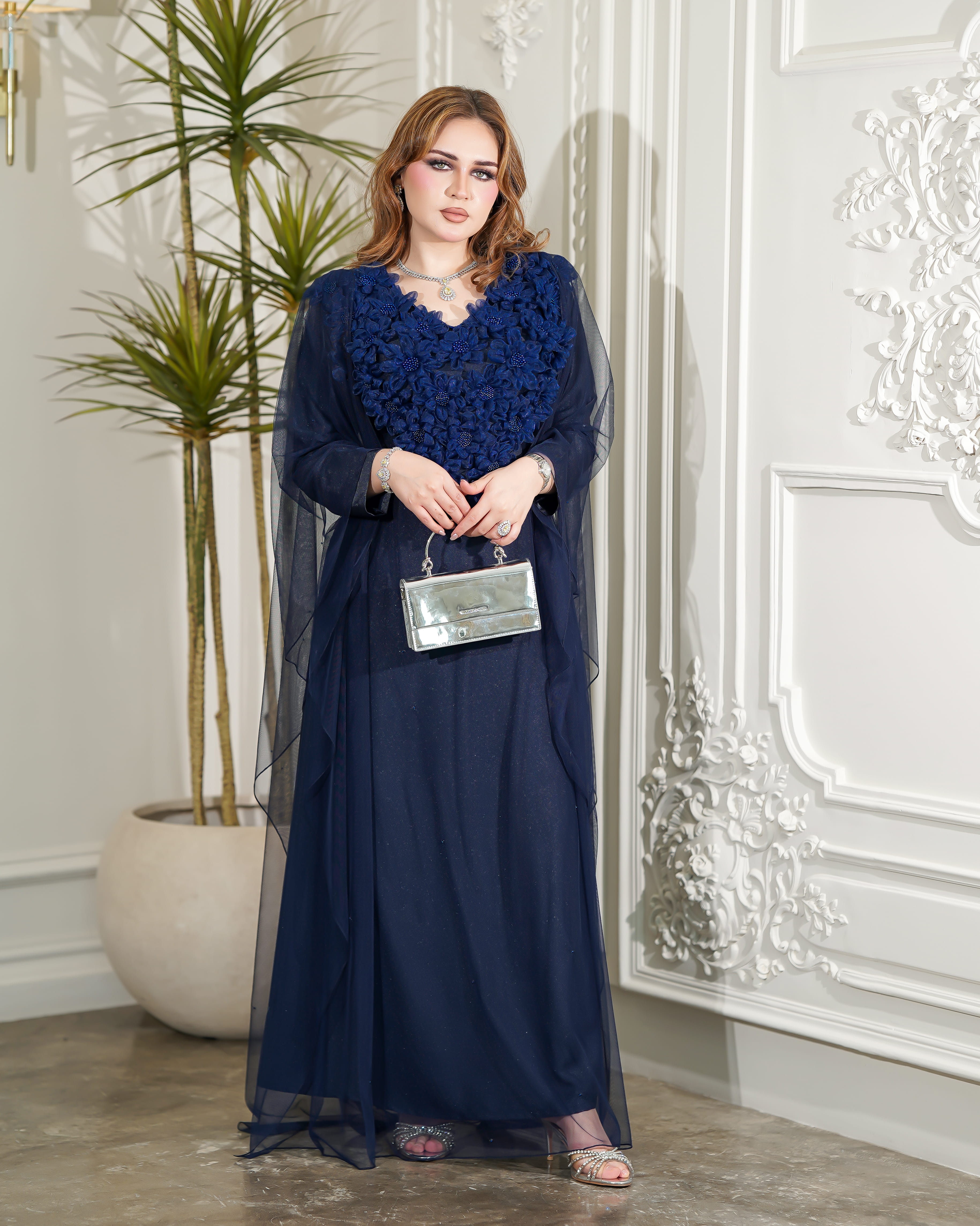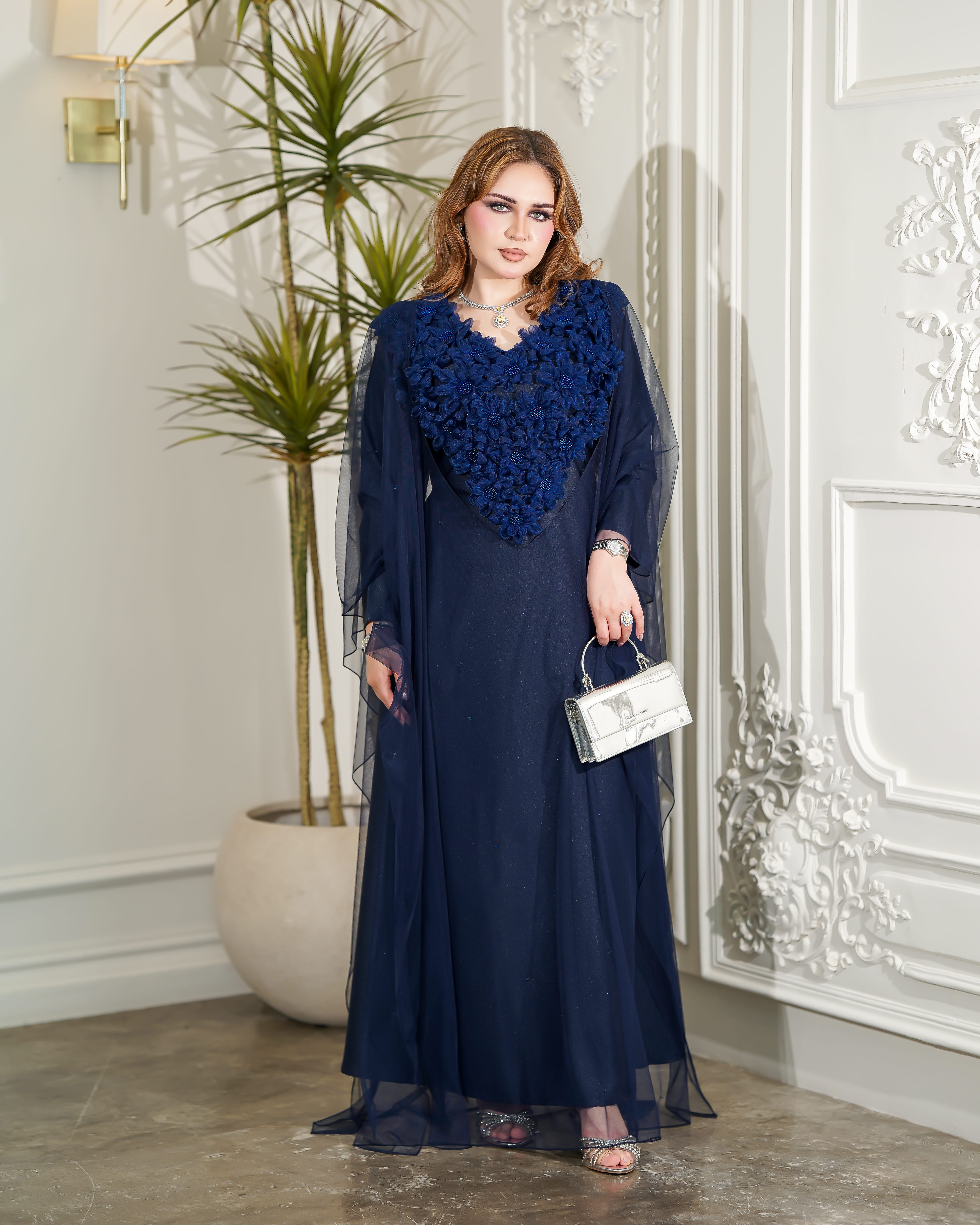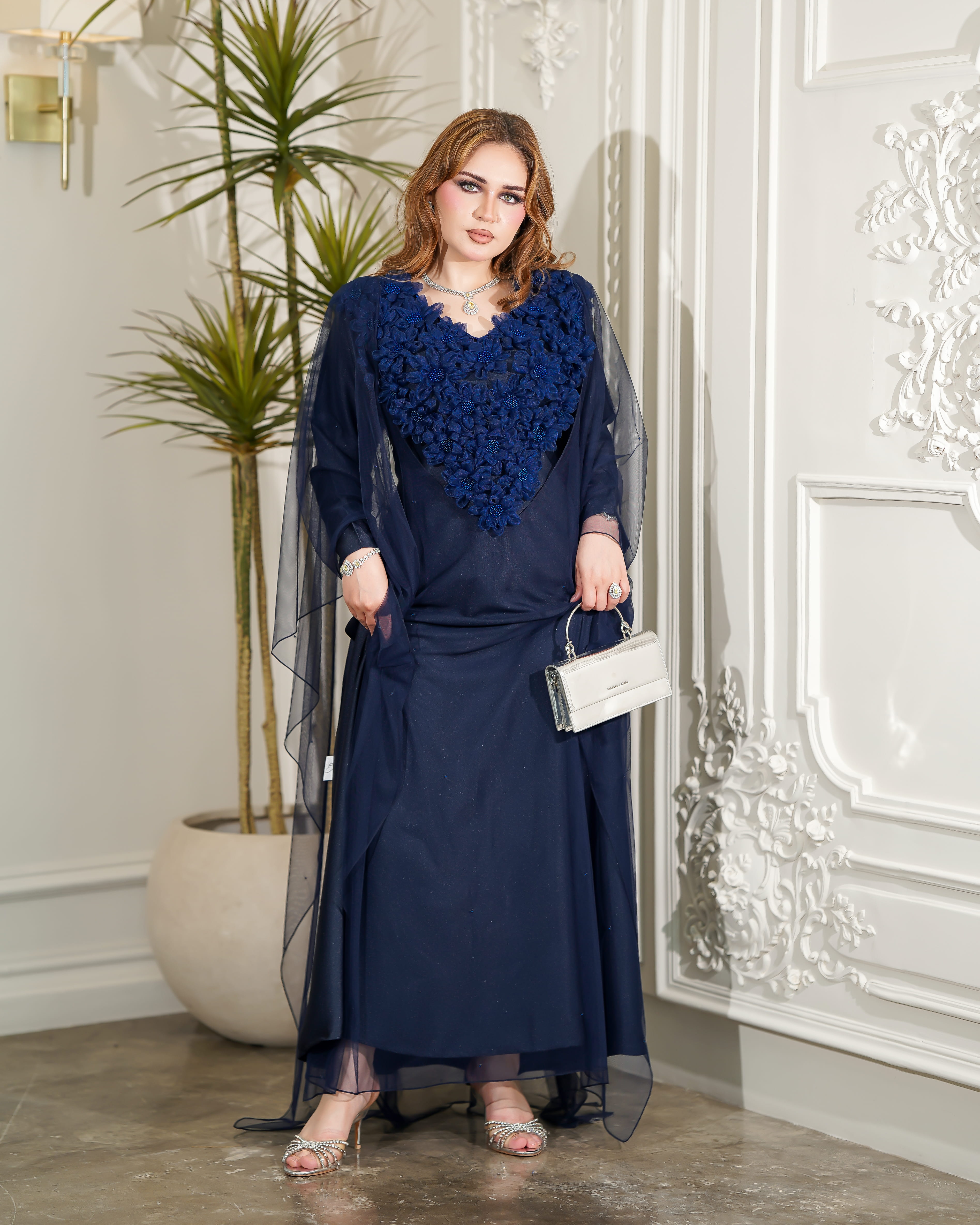 نوع القماش : حرير كاندي + تور شامل الشيلة : نعم نوع الشيلة: شك تنظيف : تنظيف جاف ملاحظة: العارضة ترتدي مقاس (الطول :54 الصدر : 20 الكم :29)