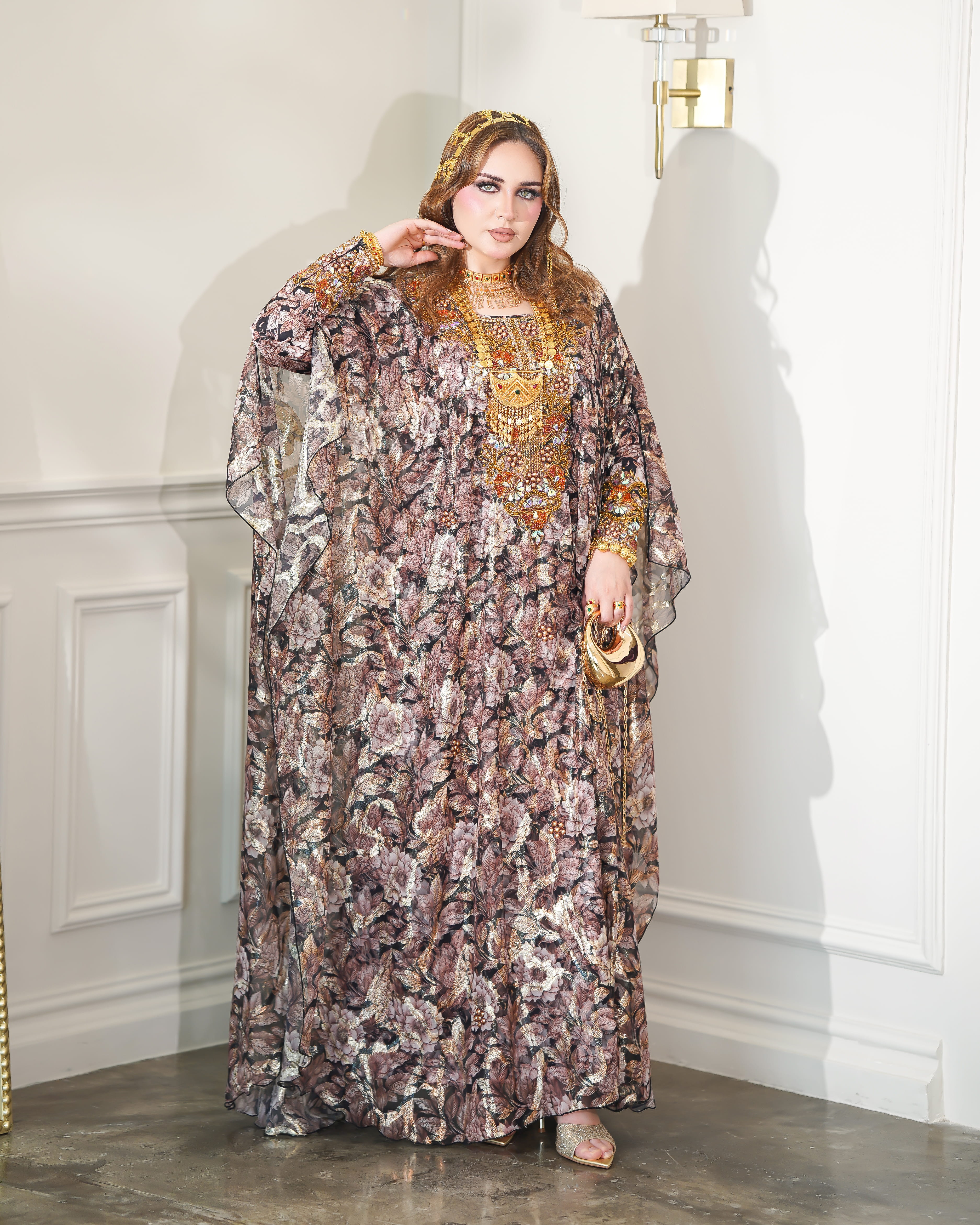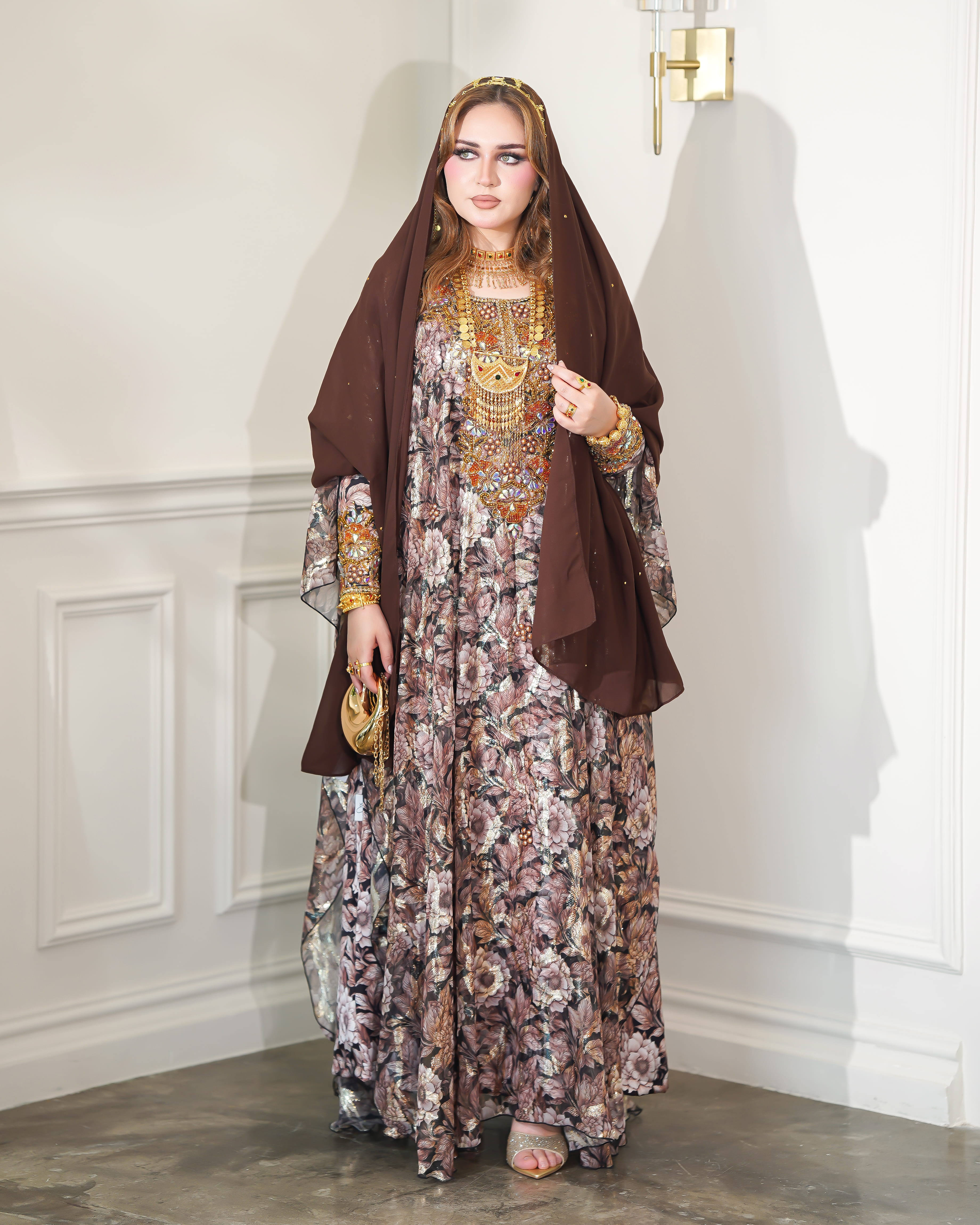 نوع القماش : شيفون + حرير شامل الشيلة : نعم نوع الشيلة: شك تنظيف : تنظيف جاف ملاحظة: العارضة ترتدي مقاس (الطول :54 الصدر : 20 الكم :29)