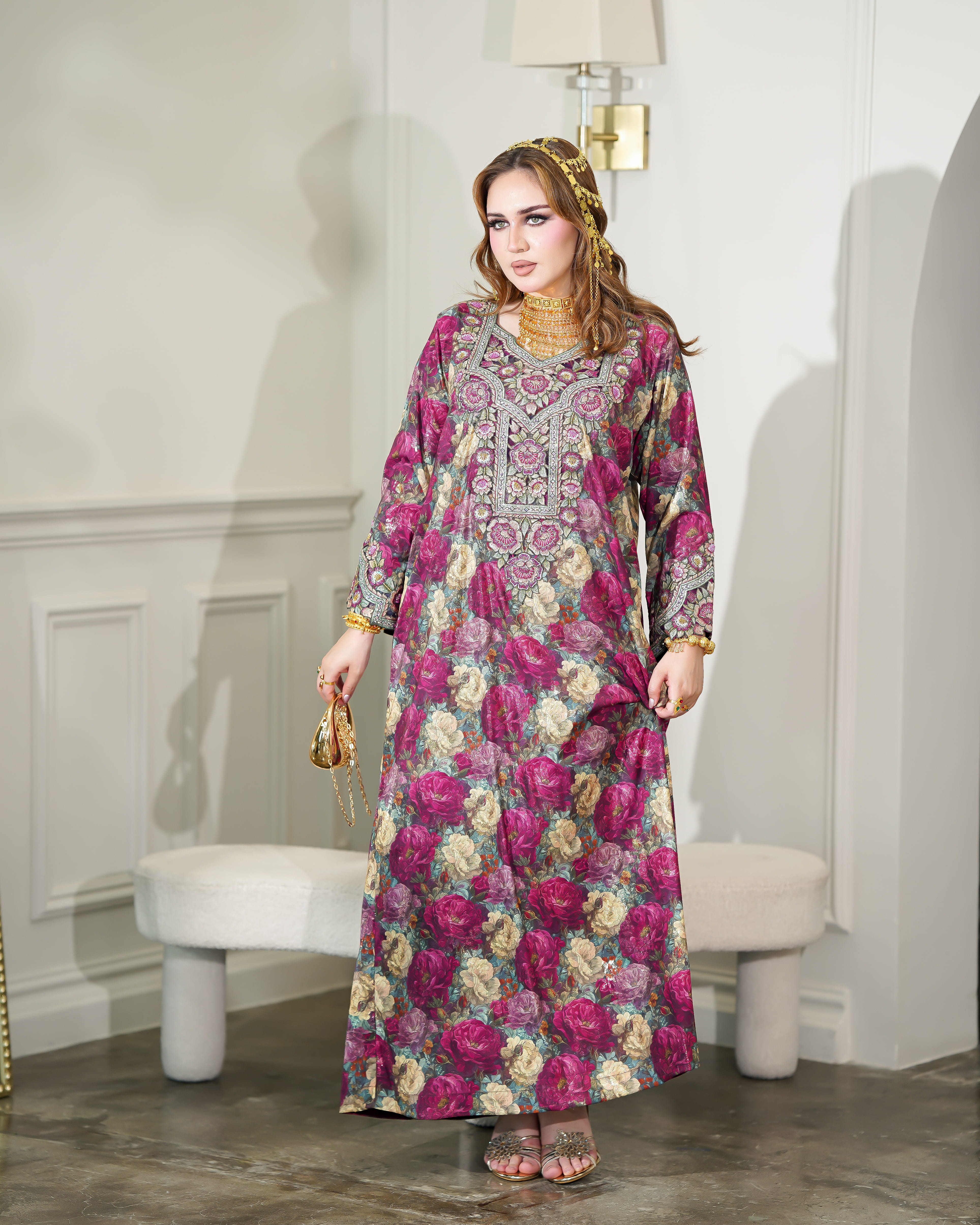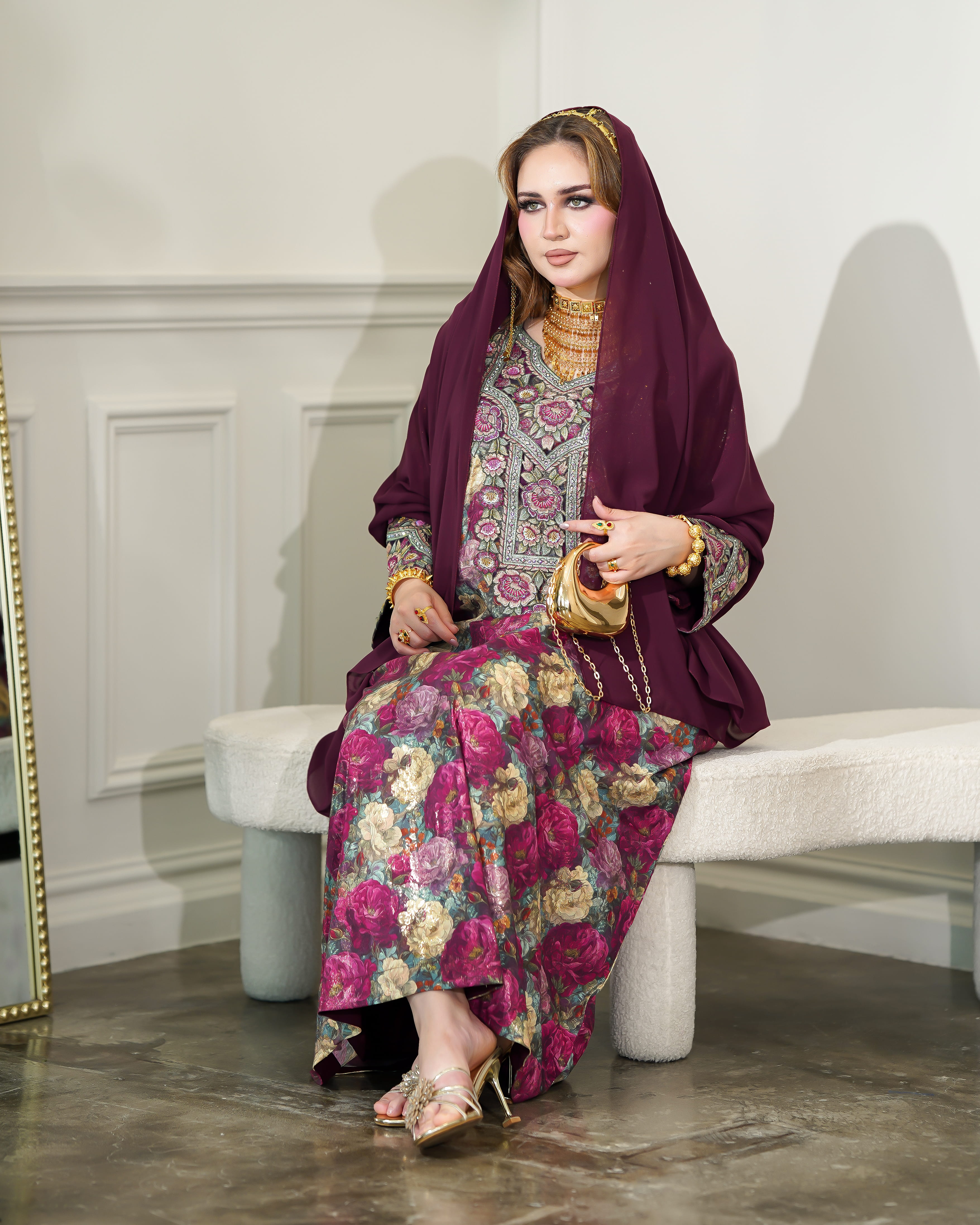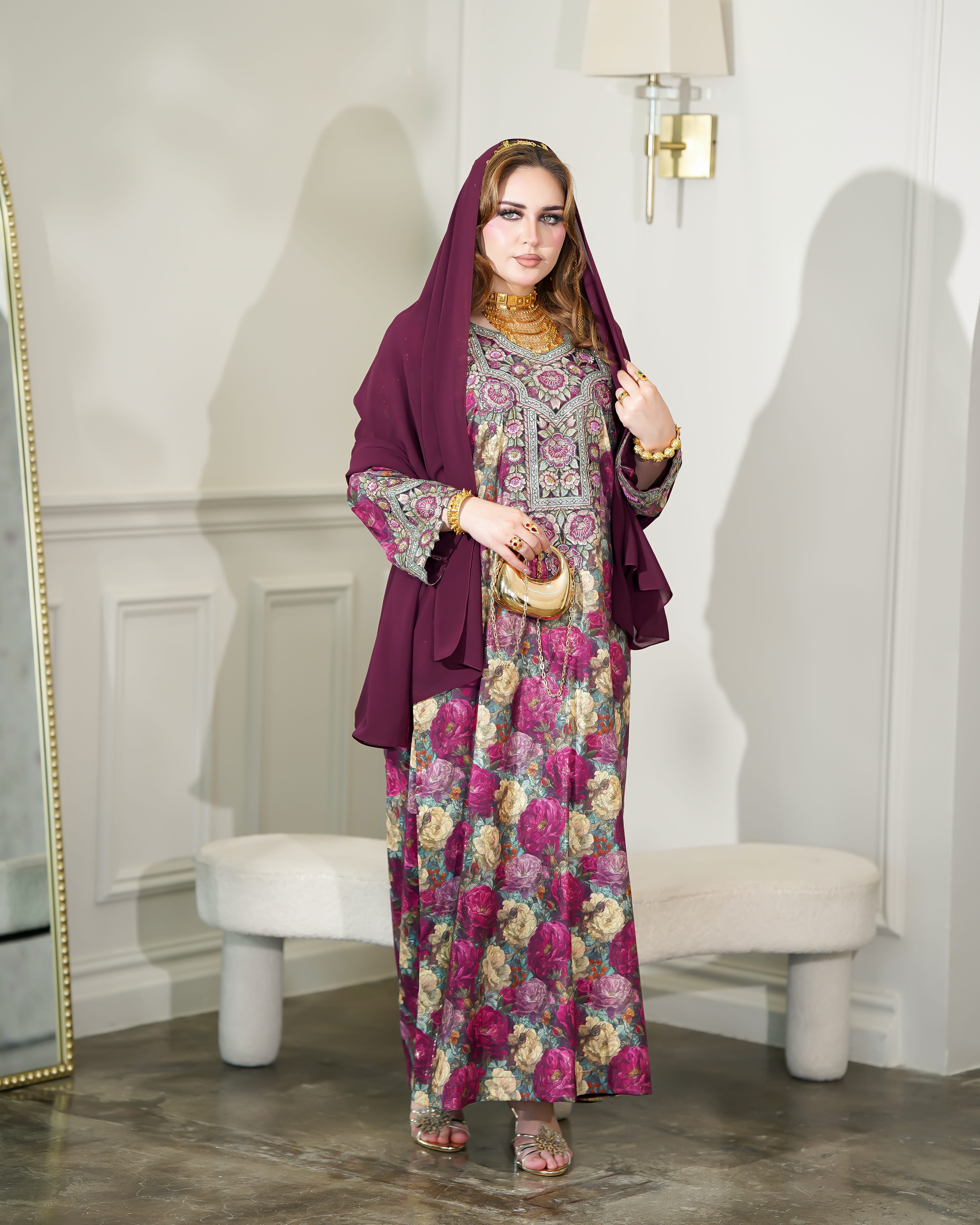نوع القماش : حرير شامل الشيلة : نعم نوع الشيلة: ساده تنظيف : تنظيف جاف ملاحظة: العارضة ترتدي مقاس (الطول :54 الصدر : 20 الكم :29)