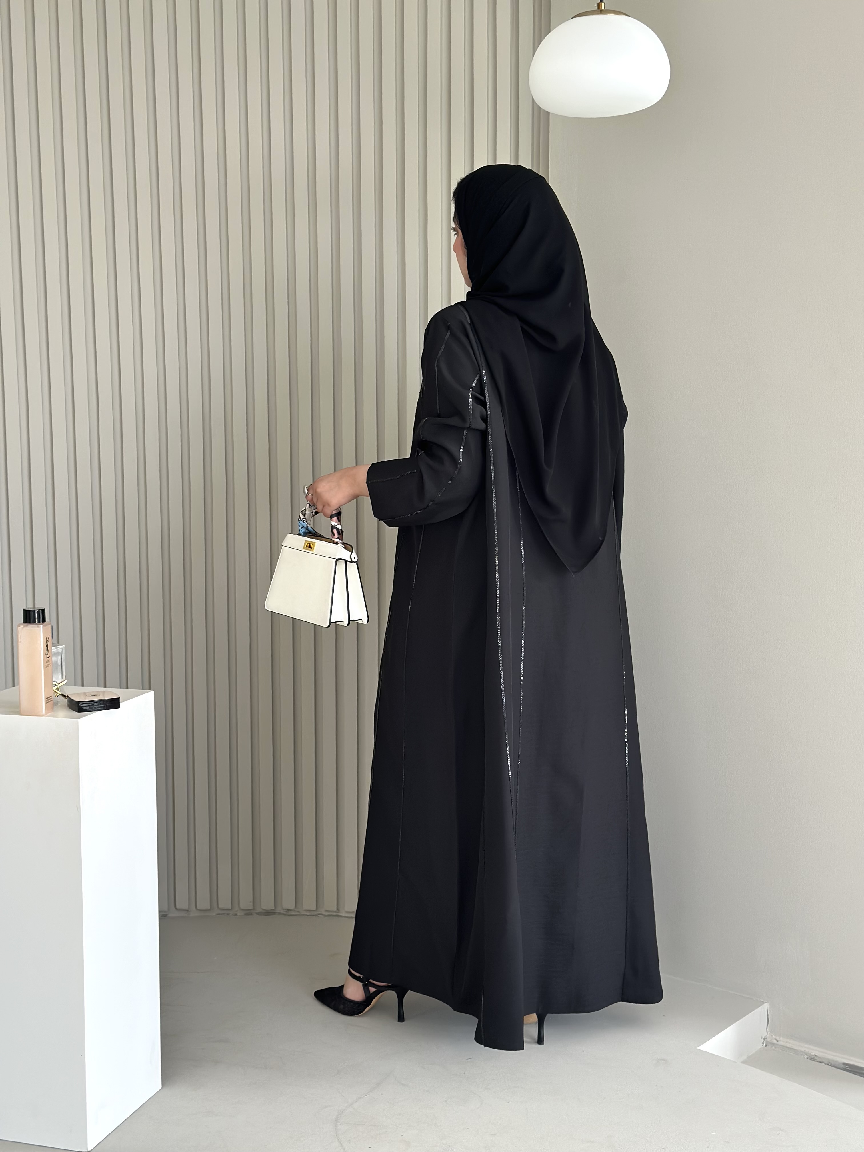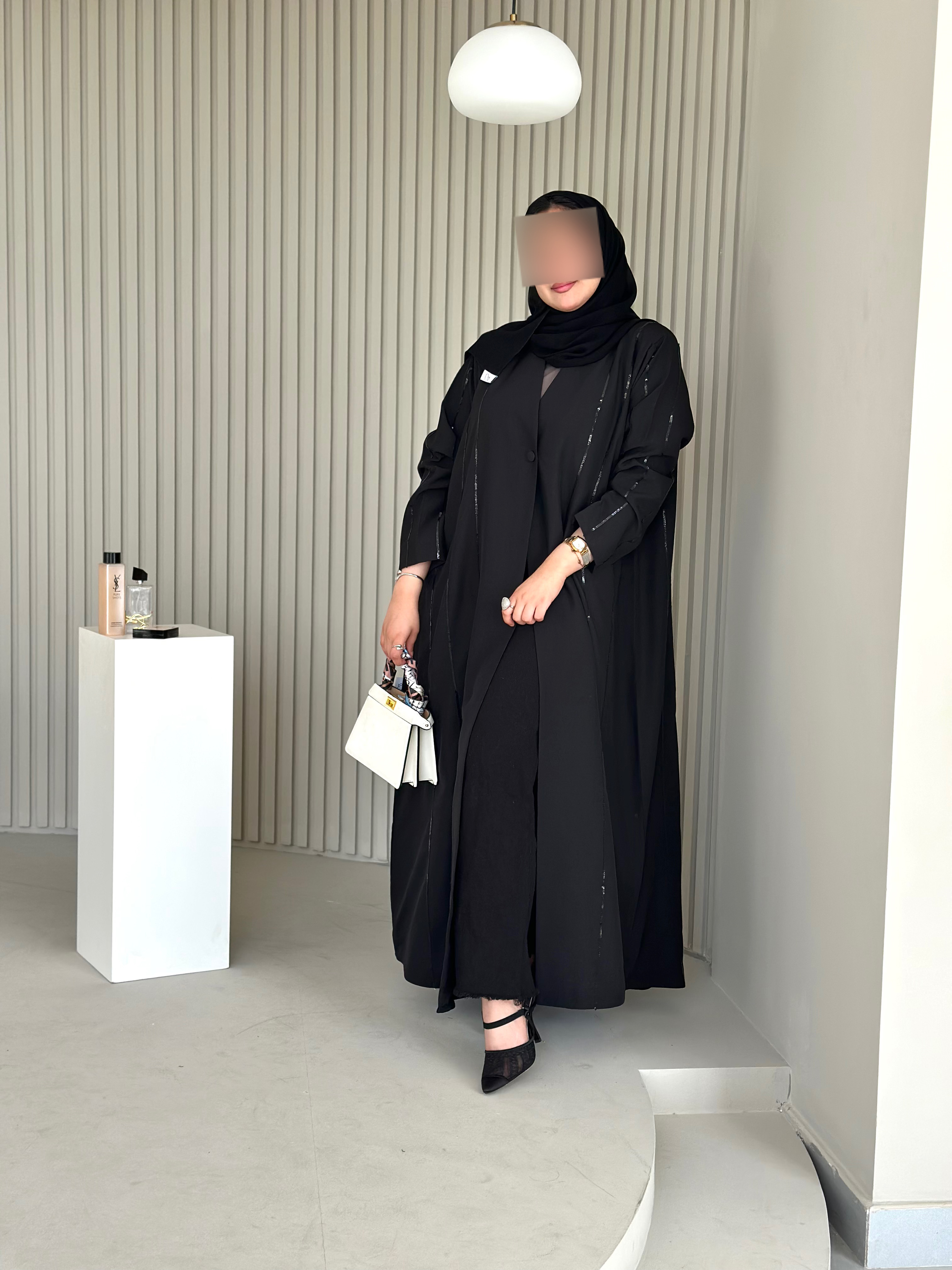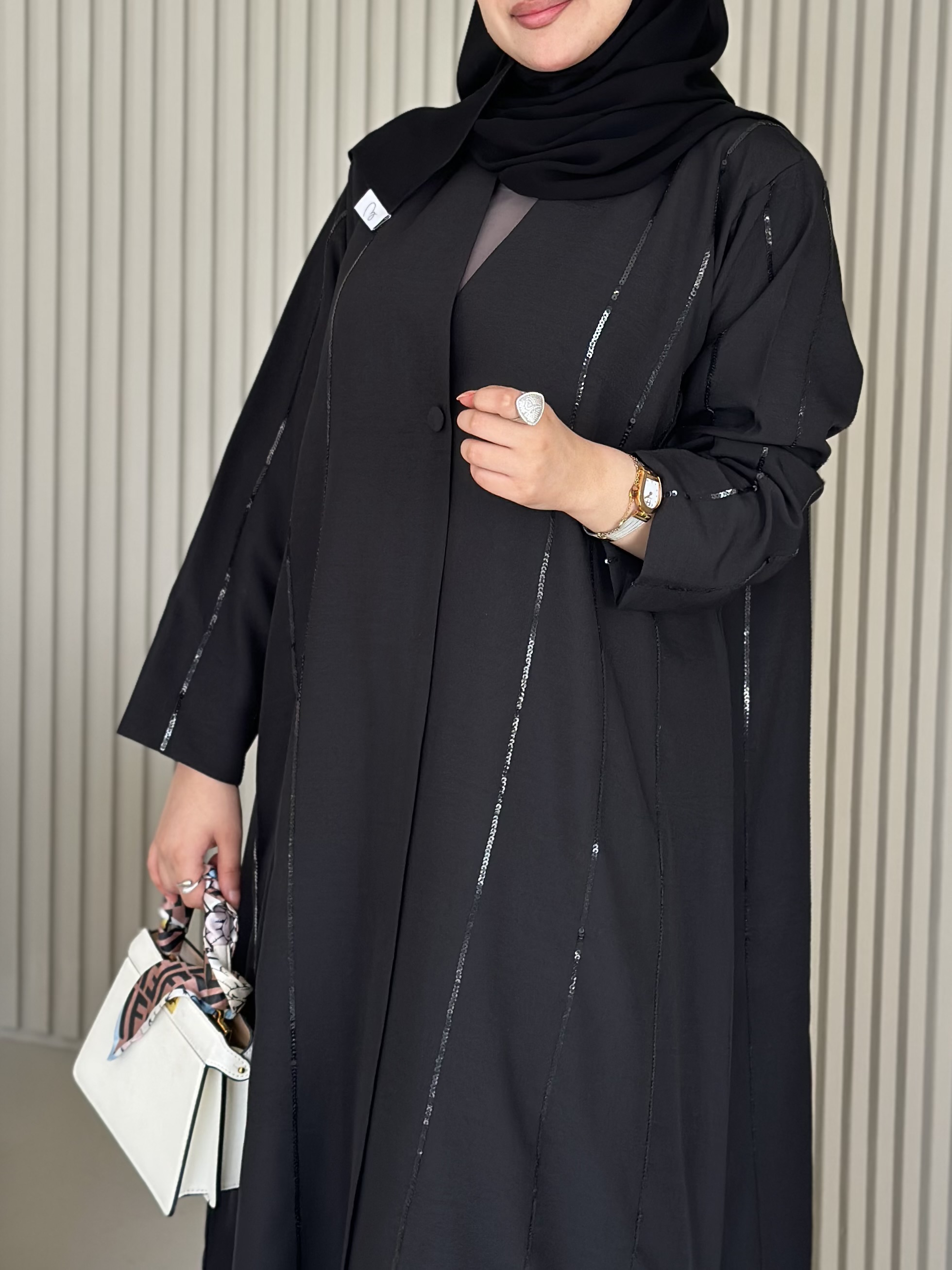 جميع العبايات التي قياس صدرها ف28 ليس بها ازرار، وجميع بقية العبايات بها ازرار نوع القماش : كريب كوري شامل الشيلة : نعم نوع الشيلة: سادة قماش الشيلة: برج الإمارات قياس الشيلة: 80 إنش تنظيف : تنظيف جاف ملاحظة: العارضة ترتدي مقاس الطول : 52 العرض : 24 الكم من نص الرقبه : 29
