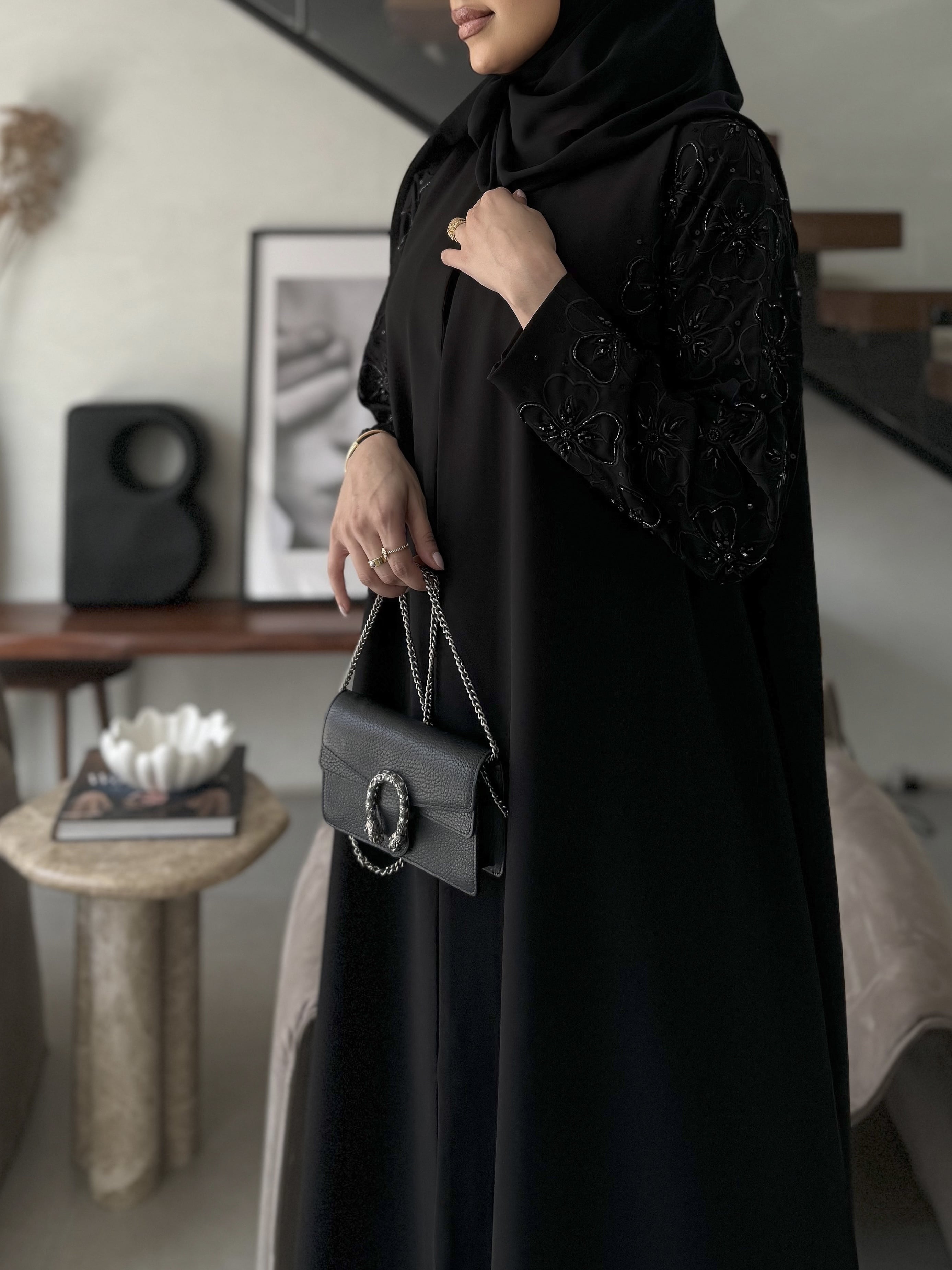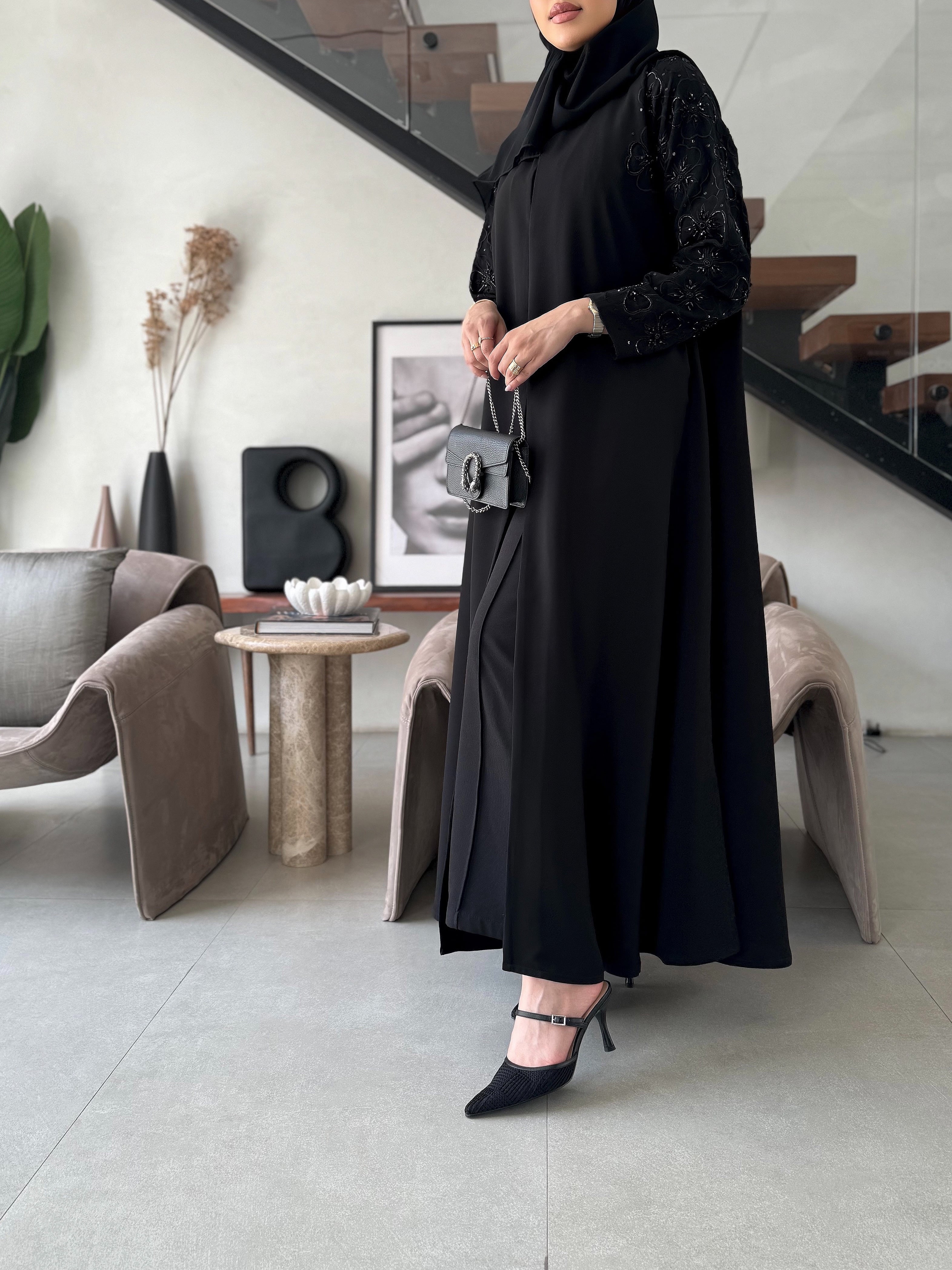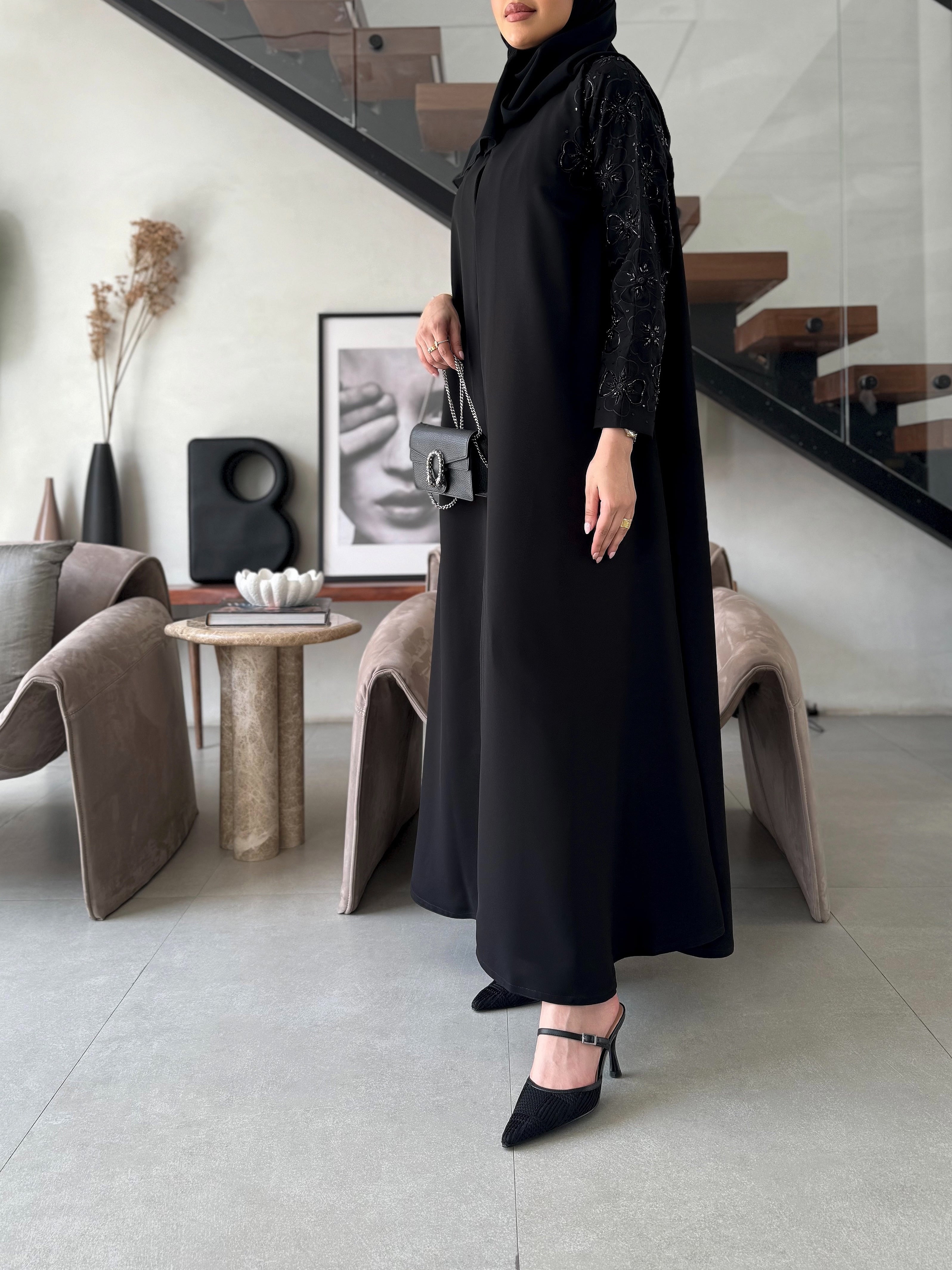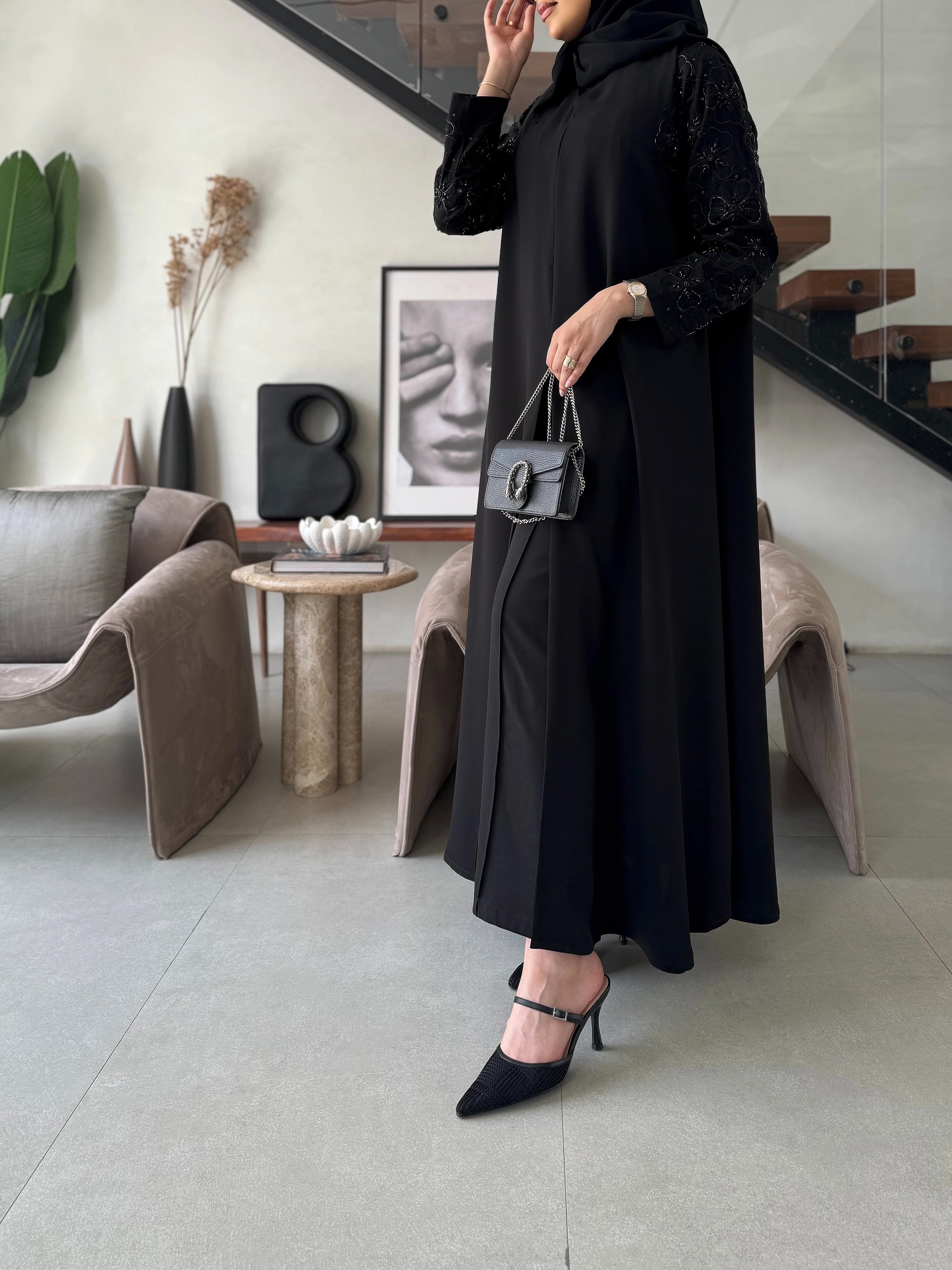 جميع العبايات التي قياس صدرها ف28 ليس بها ازرار، وجميع بقية العبايات بها ازرار نوع القماش : كريب أندونيسي ناعم شامل الشيلة : نعم نوع الشيلة: سادة قماش الشيلة: برج الإمارات قياس الشيلة: 80 إنش تنظيف : تنظيف جاف ملاحظة: العارضة ترتدي مقاس الطول : 54,5 العرض : 22 الكم من نص الرقبه : 30