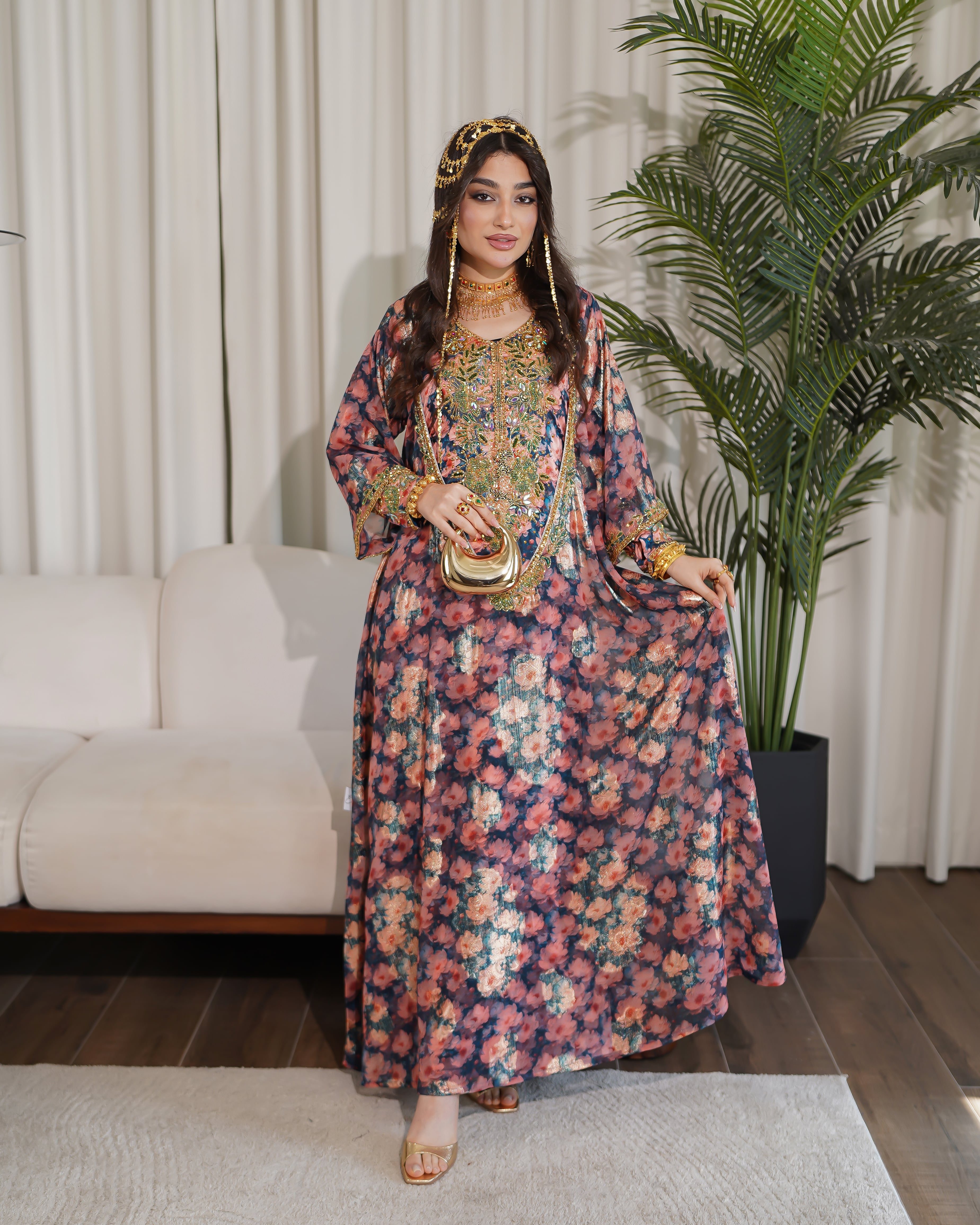 نوع القماش : شيفون مبطن بحرير شامل الشيلة : نعم نوع الشيلة: شك قماش الشيلة: دجى الليل قياس الشيلة: 80 إنش تنظيف : تنظيف جاف ملاحظة: العارضة ترتدي مقاس الطول : 54 العرض : 18 الكم من نص الرقبه : 29