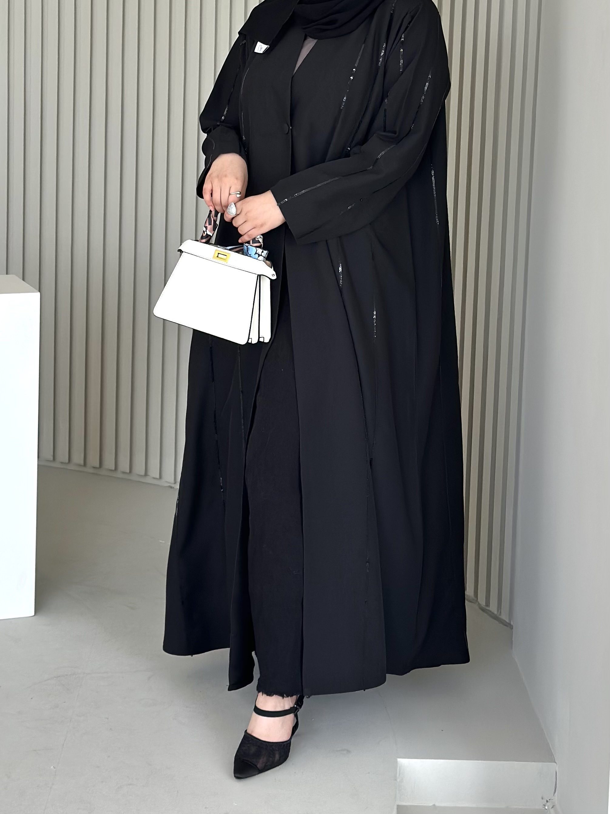 جميع العبايات التي قياس صدرها ف28 ليس بها ازرار، وجميع بقية العبايات بها ازرار نوع القماش : كريب كوري شامل الشيلة : نعم نوع الشيلة: سادة قماش الشيلة: برج الإمارات قياس الشيلة: 80 إنش تنظيف : تنظيف جاف ملاحظة: العارضة ترتدي مقاس الطول : 52 العرض : 24 الكم من نص الرقبه : 29